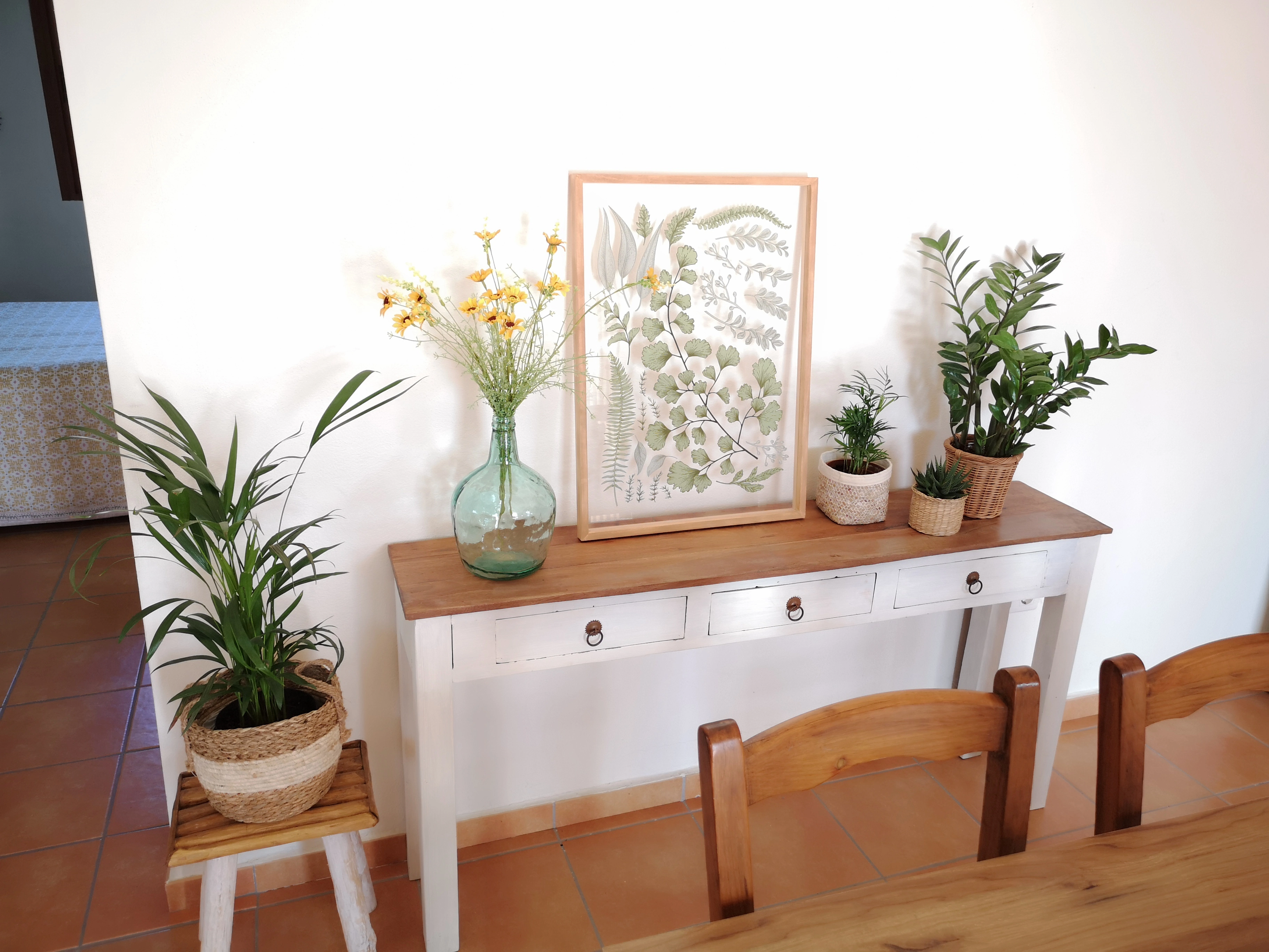 Fíjate en las plantas, colocadas en cestas de mimbre o yute. Se quedan muy bonitas y dan un toque cálido y acogedor, además de purificar el ambiente!!.